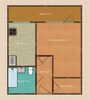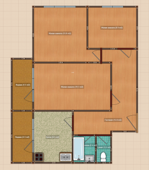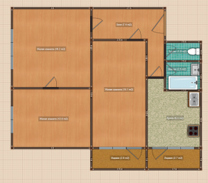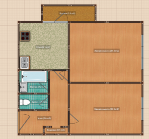 Однокомнатная квартира с кухней 10,81 кв. м и лоджией 6.7 кв.м. имеет общую площадь 41.05 кв.м, санузел смежный. Вариантов планировок «двушек» два: 48,7 — общая площадь, комнаты 15,9 и 11,6 кв.м либо 49,2 — общая, комнаты 16,1 и 12,9 кв. м, санузел всегда раздельный. Трехкомнатная имеет общую площадь 68,2 кв.м с комнатнами 10/16,8/17,6, кухня — 7,5 кв. м, санузел разделен, две лоджии.