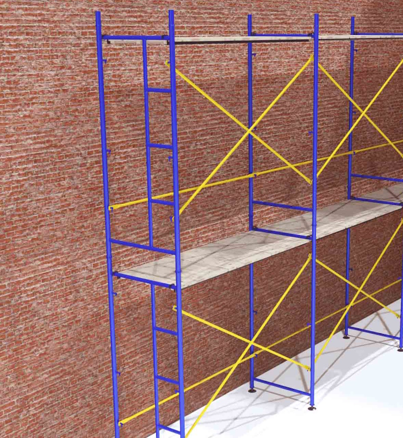 - Рамні риштування — прості в монтажі, ідеальні для фасадних робіт. Мають гарну стійкість і зручну конфігурацію.